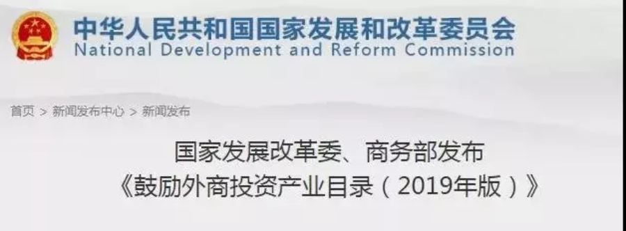 6月30日,國家發(fā)展改革委、商務部發(fā)布《鼓勵外商投資產業(yè)目錄(2019年版)》,自2019年7月30日起施行。《外商投資產業(yè)指導目錄(2017年修訂)》(其中外商投資準入負面清單已于2018年7月28日廢止)鼓勵類和《中西部地區(qū)外商投資優(yōu)勢產業(yè)目錄(2017年修訂)》同時廢止。