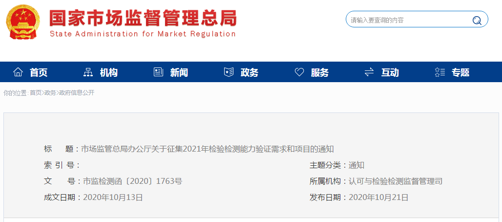 2021年檢驗檢測能力驗證需求和項目征集開始 |